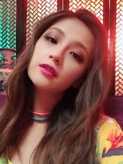 惠瑕有着一头及肩的卷发,自然的波浪造型让她看起来热情又俏丽,瓜子脸搭配了大小适中的丹凤眼和东方人里面算高挺的鼻子小巧的丰唇画着桃红色口红,似有若无的淡妆让二十六岁的她成熟重又带点可爱。
