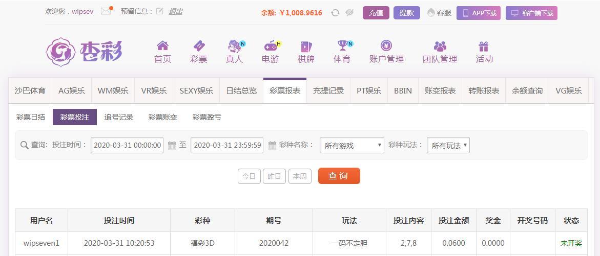 投注的福彩3D彩票