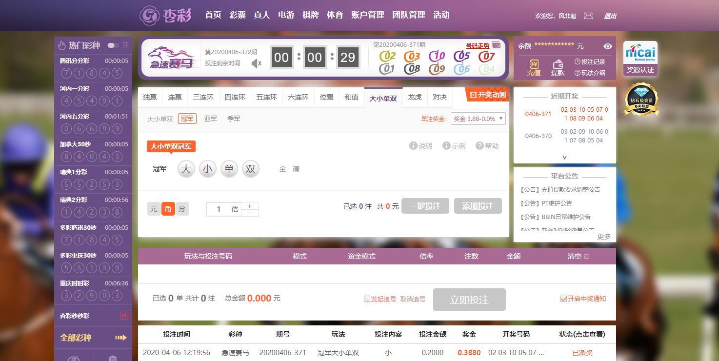 4-6杏彩急速赛马运气挺不错