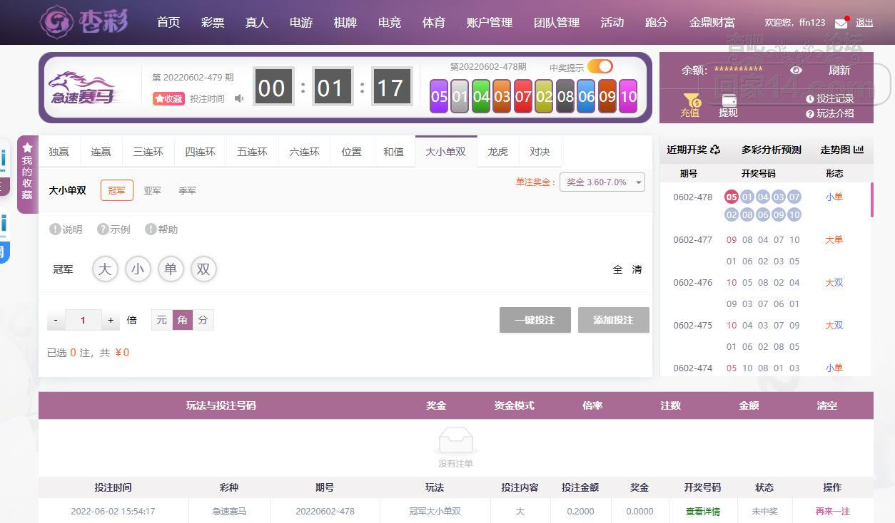 6-2杏彩急速赛马输了点