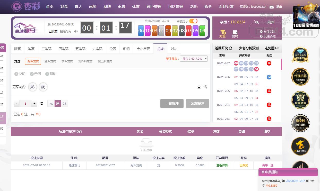 赛马终于中了呢!