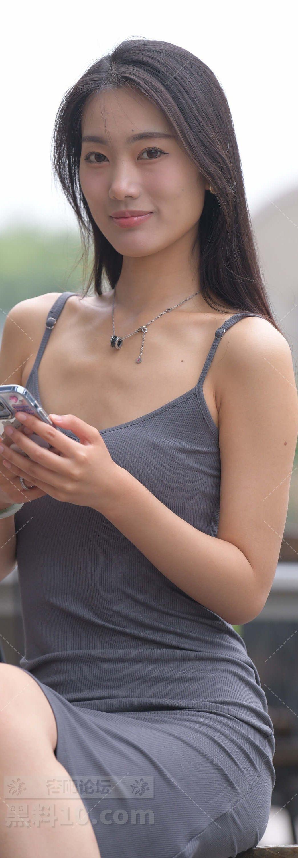 黑色吊带连衣裙长发美女完美身材被勾勒出来【10P】