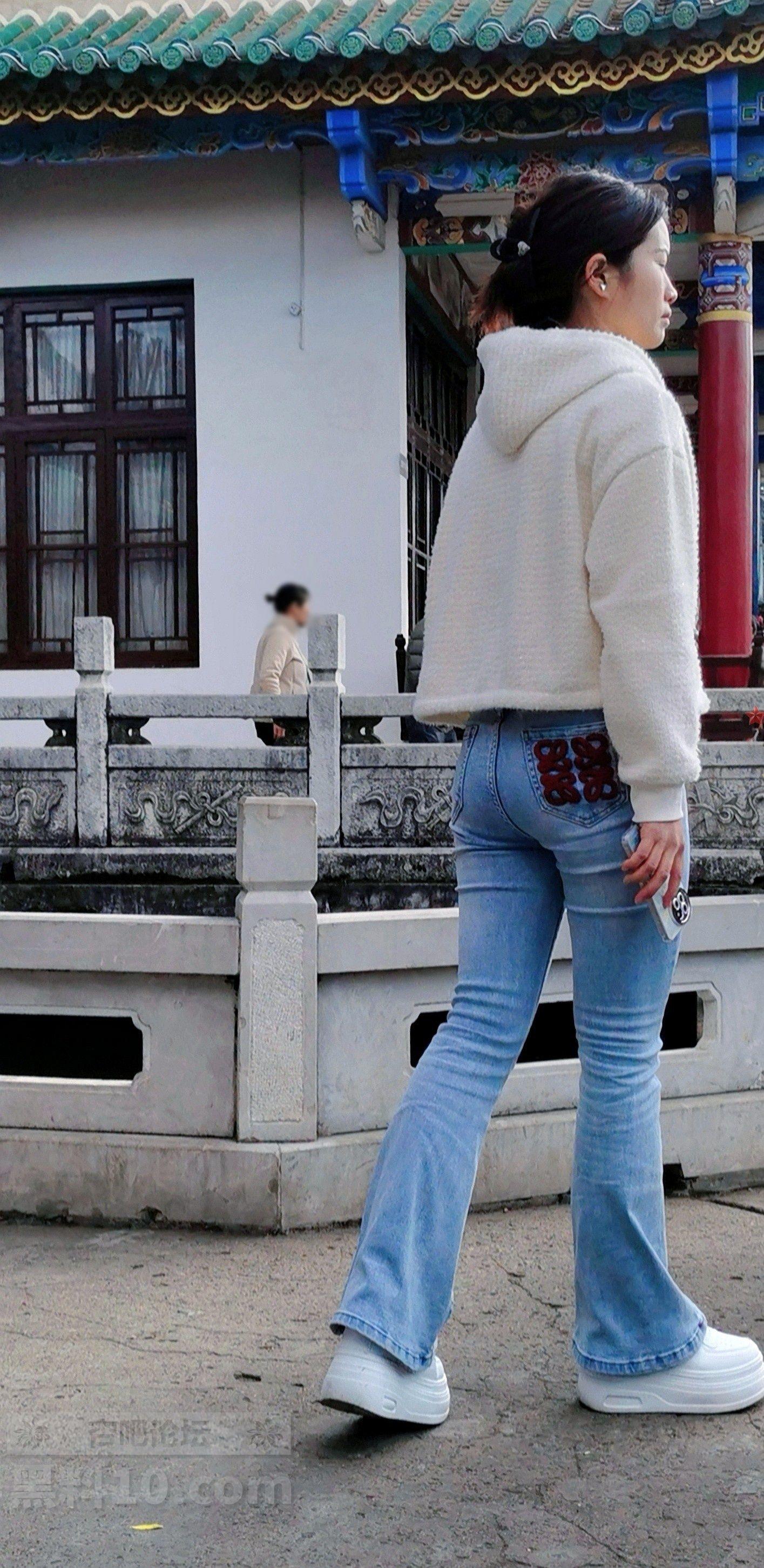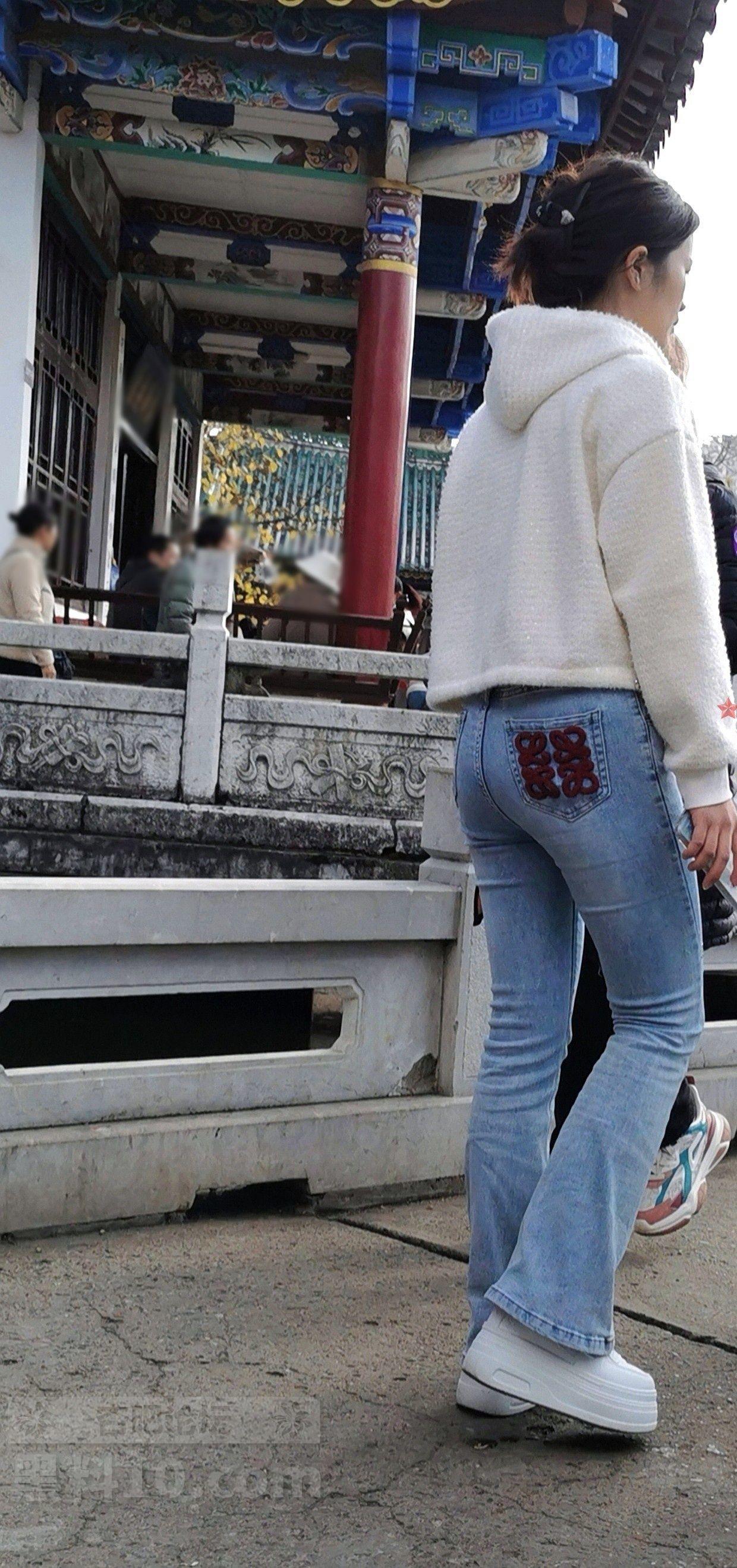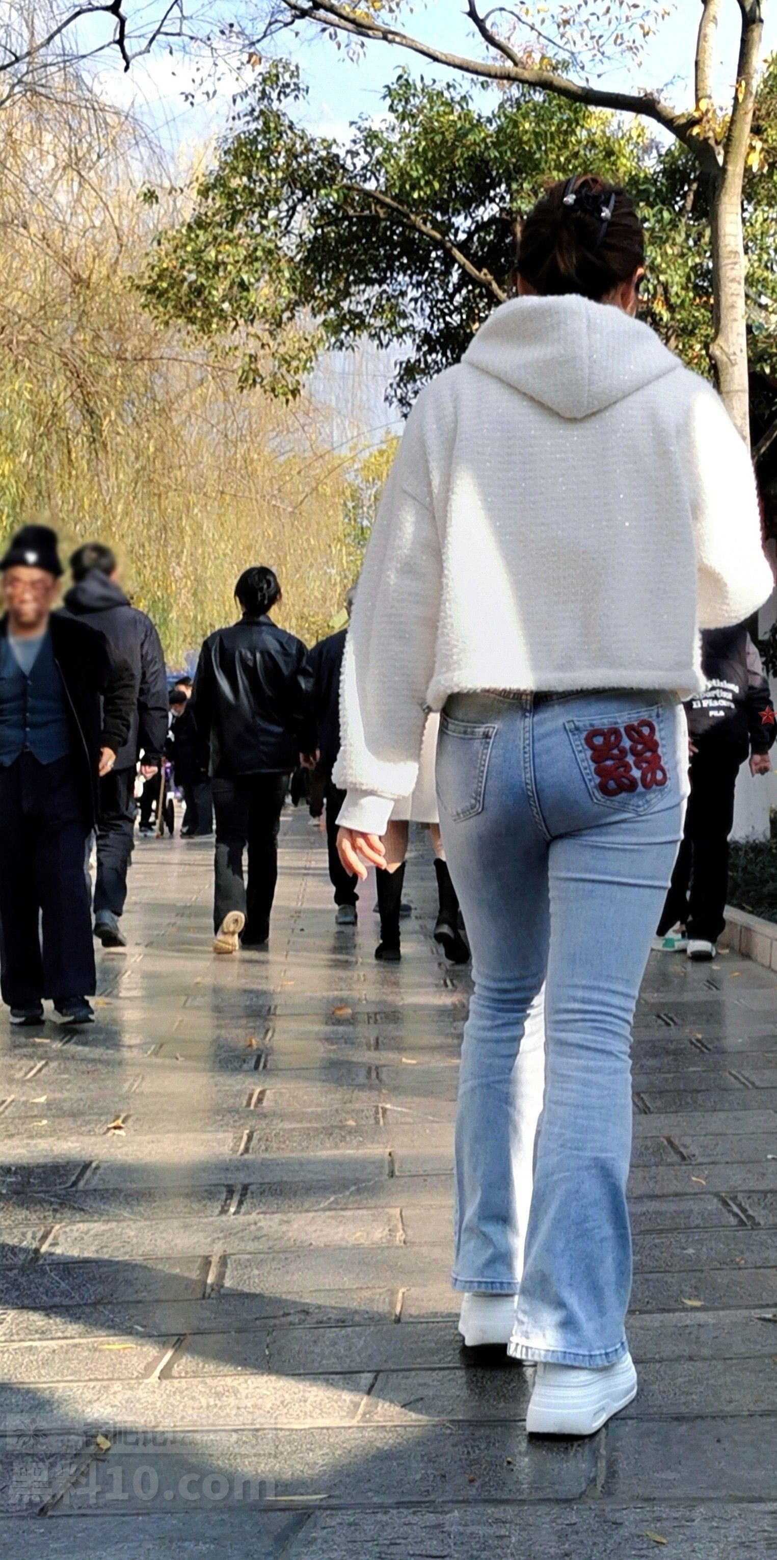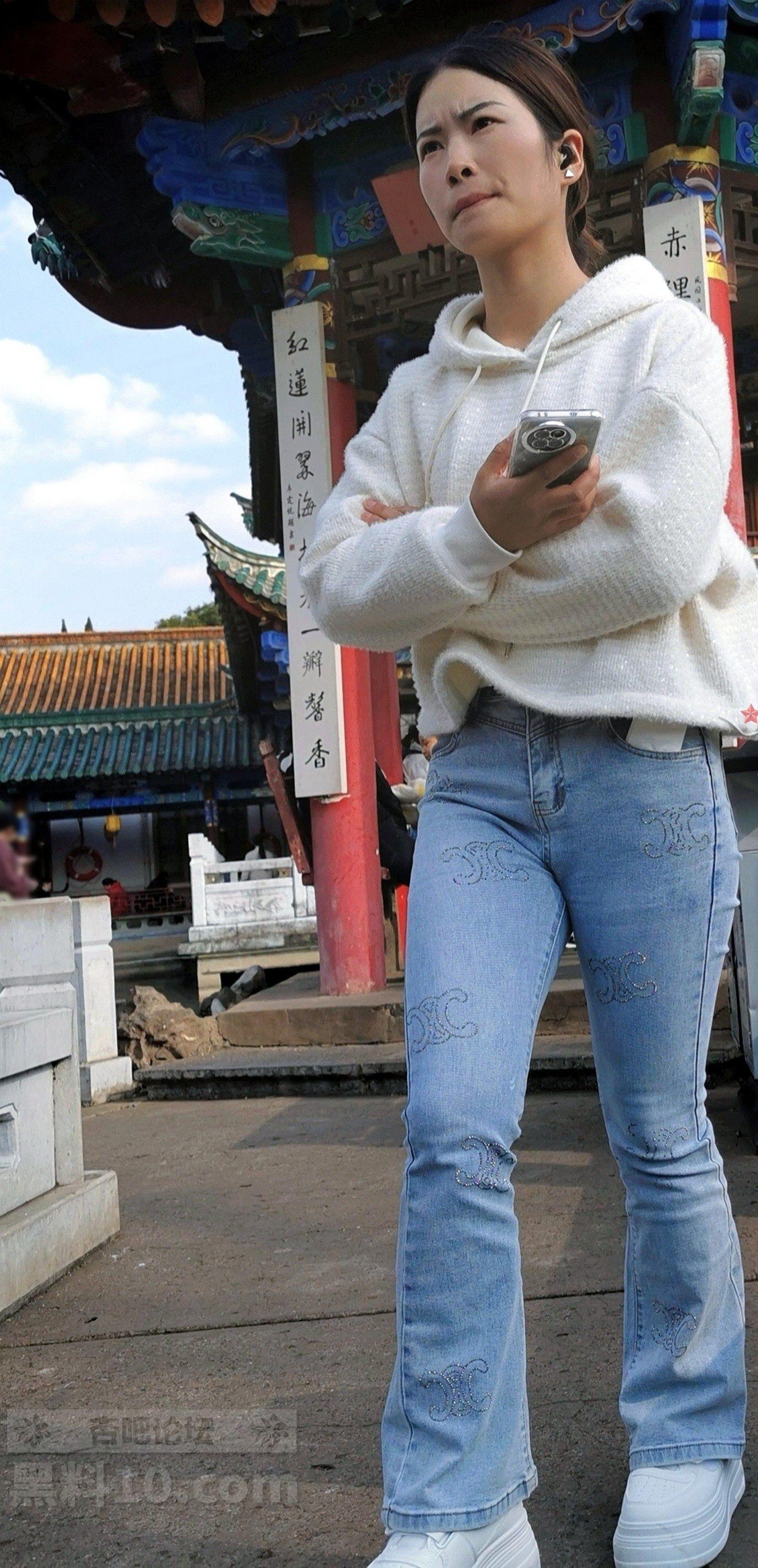 白色帽兜上衣牛仔长裤轻熟女游览古街【10P】