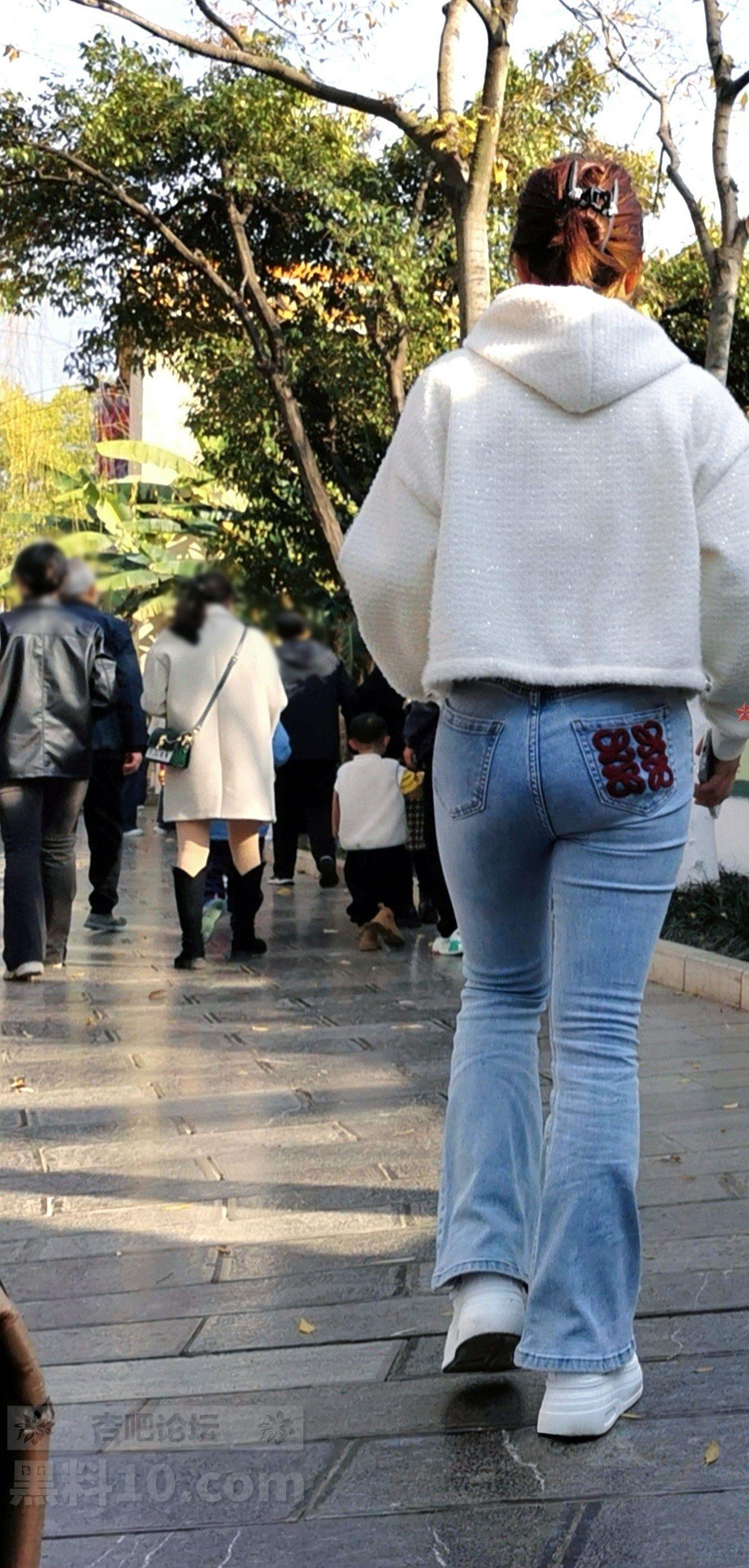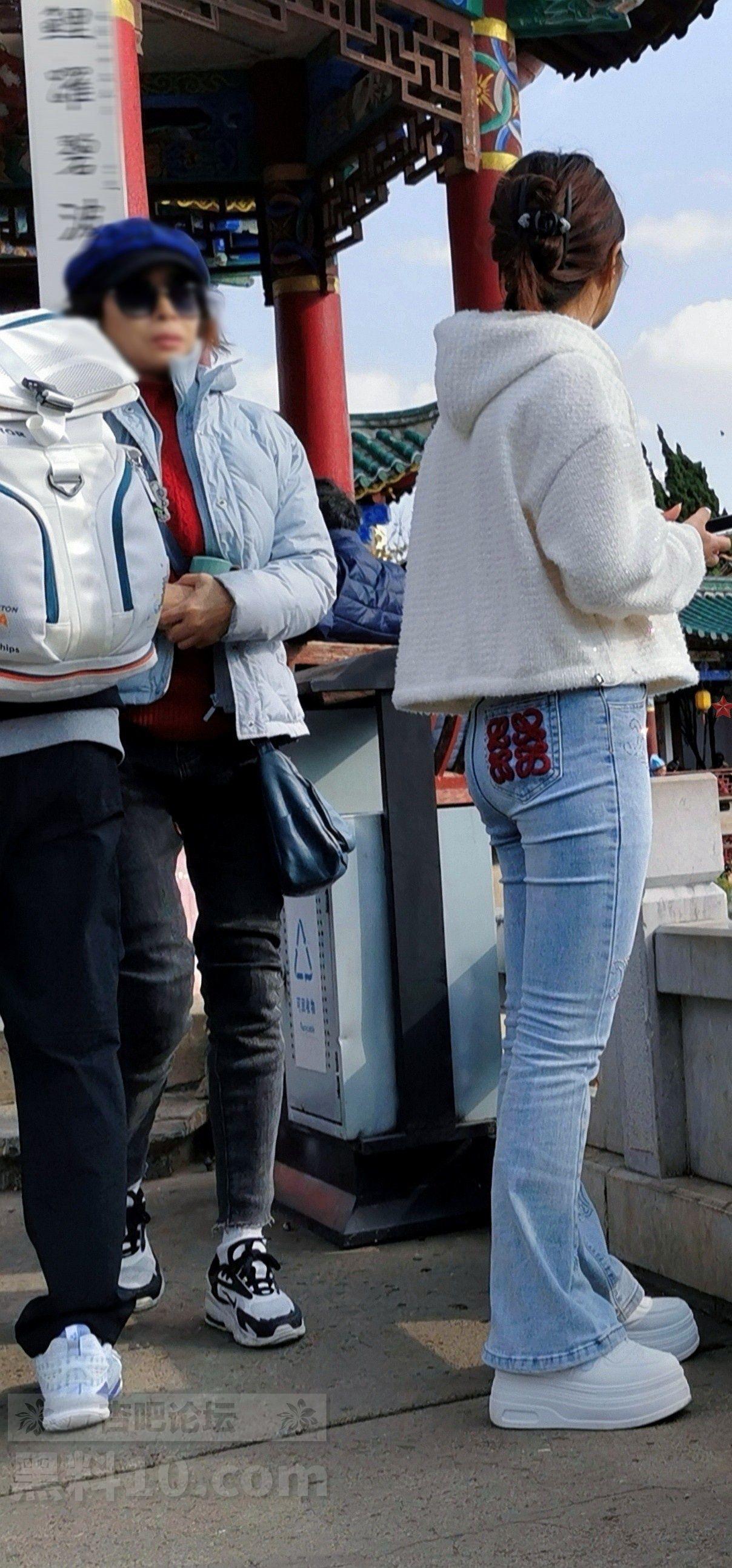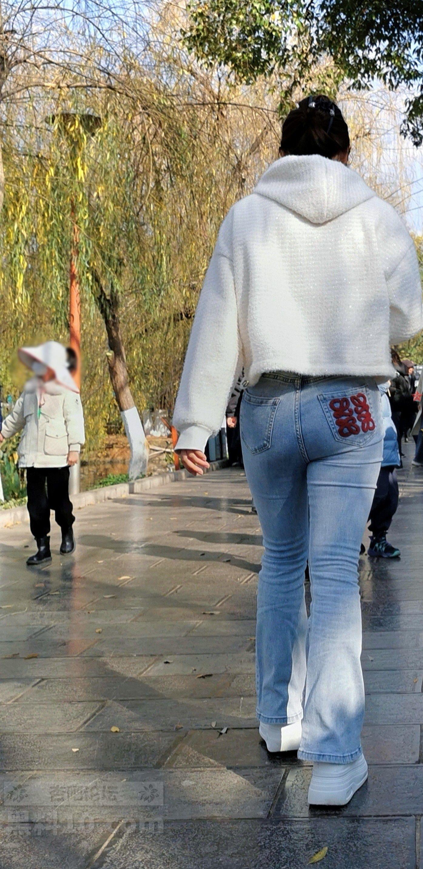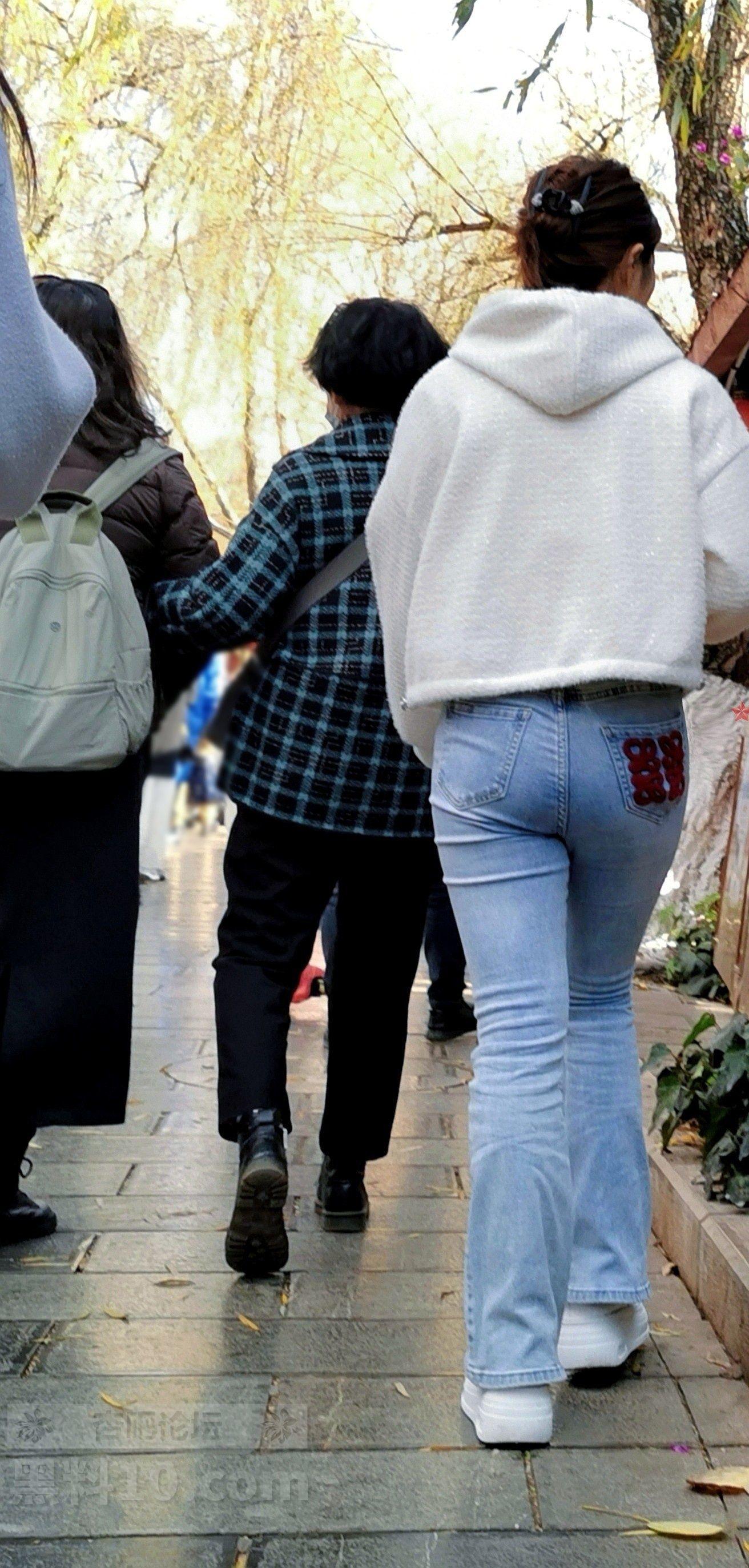 白色帽兜上衣牛仔长裤轻熟女游览古街【10P】