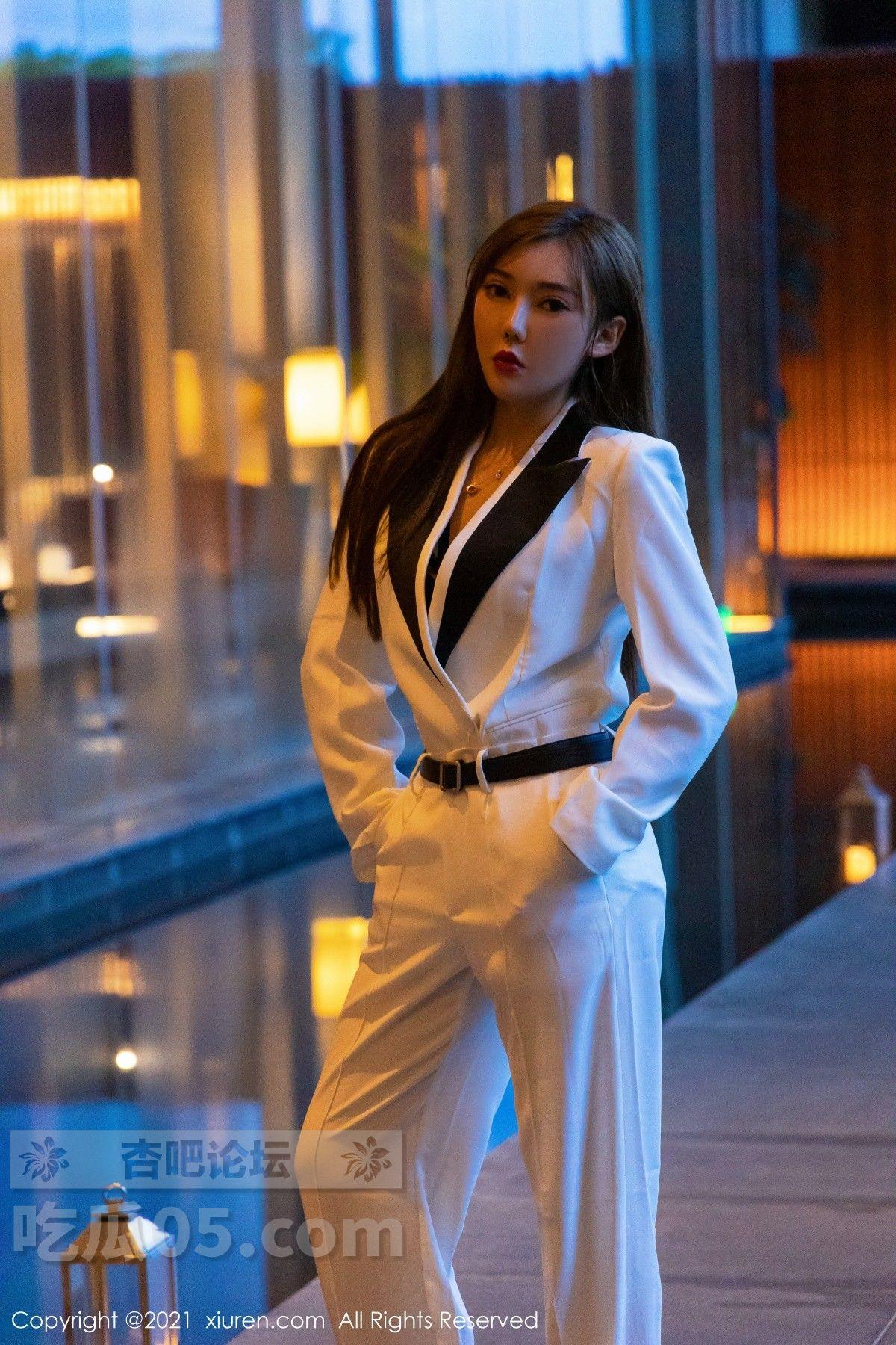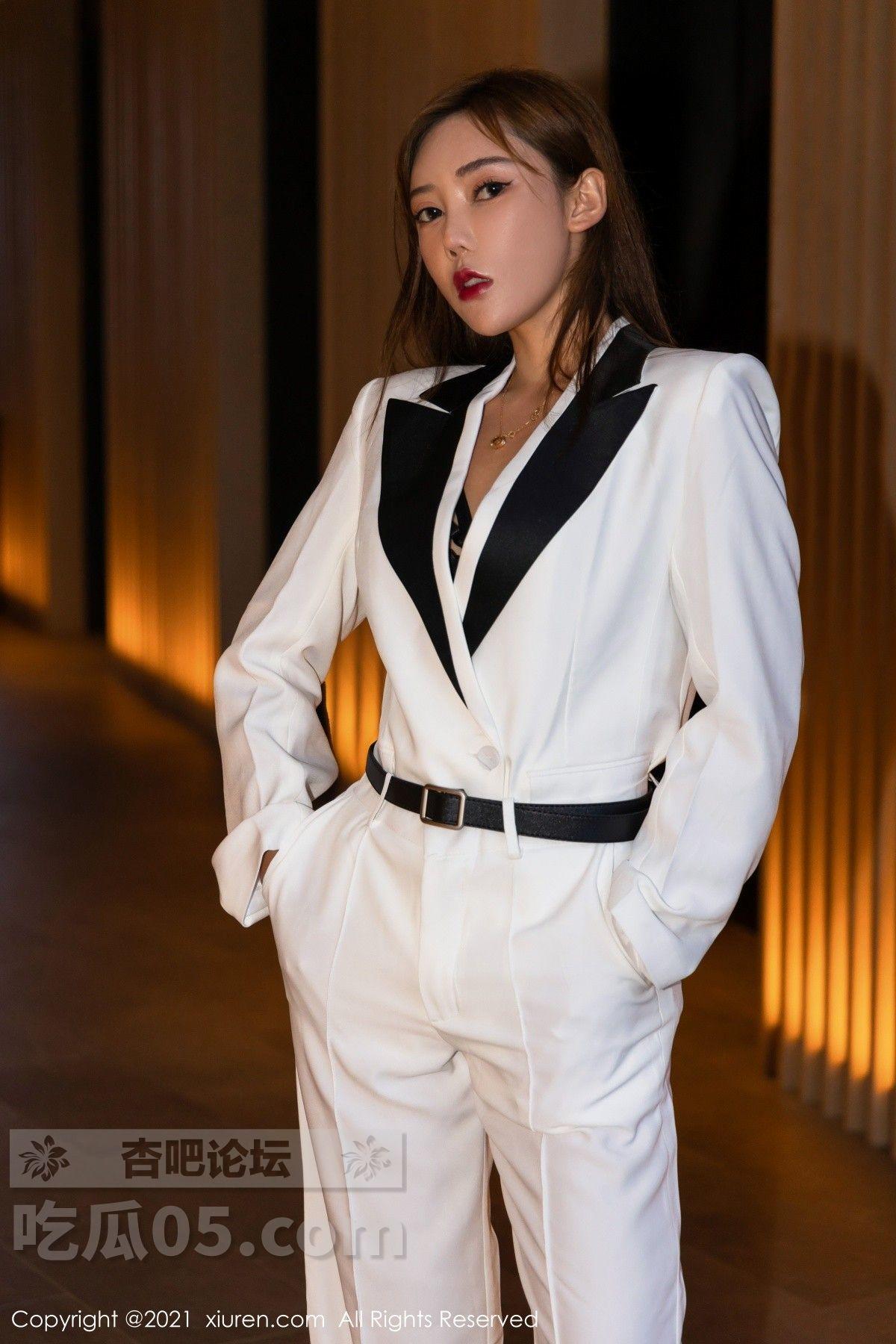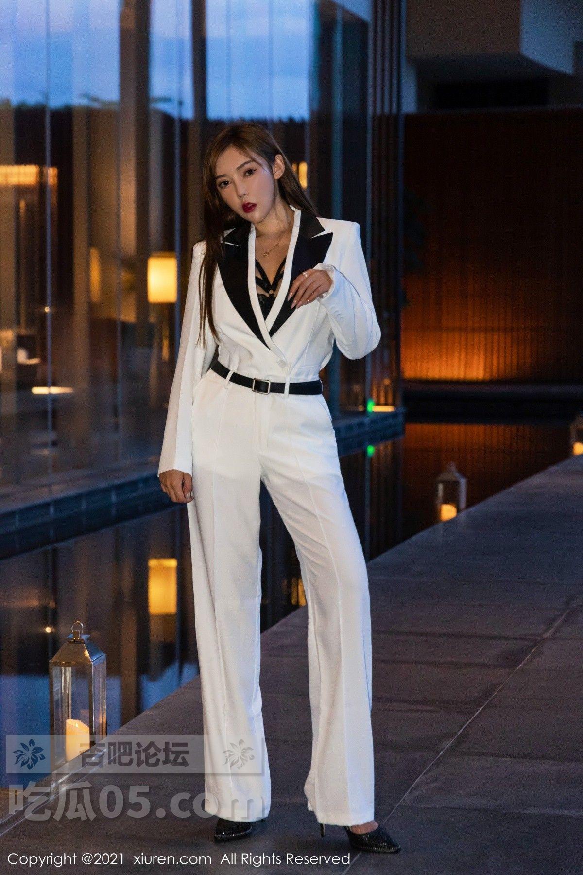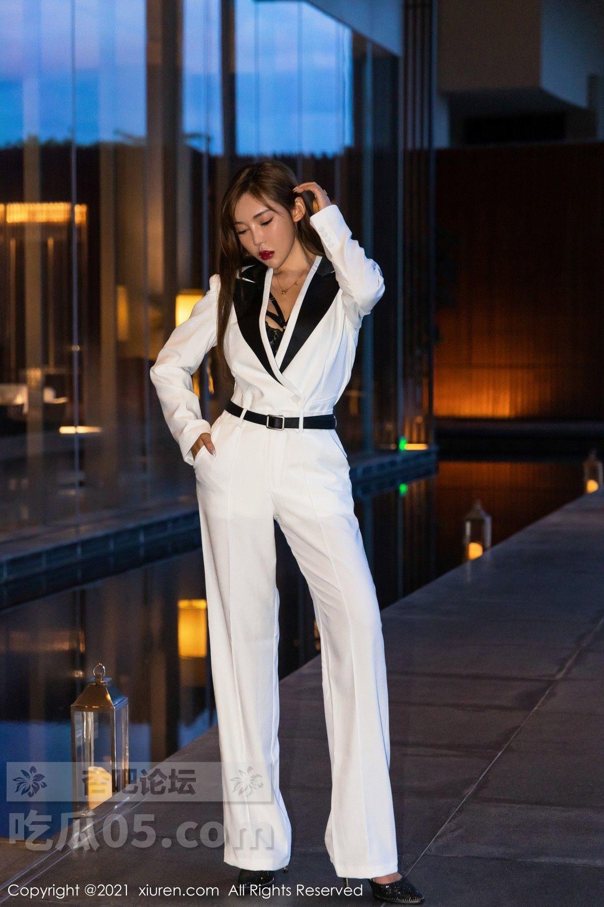 [美腿翘臀] 模特萌汉药baby三亚旅拍白色飒爽西装半脱露缕空内衣诱惑写真【50P】 |