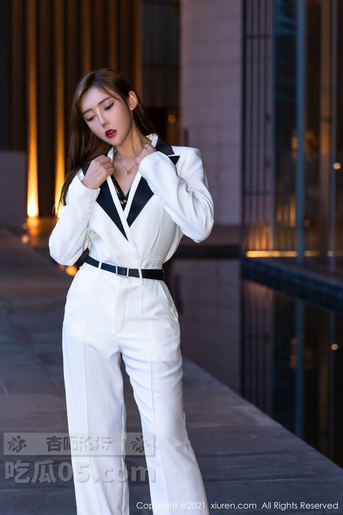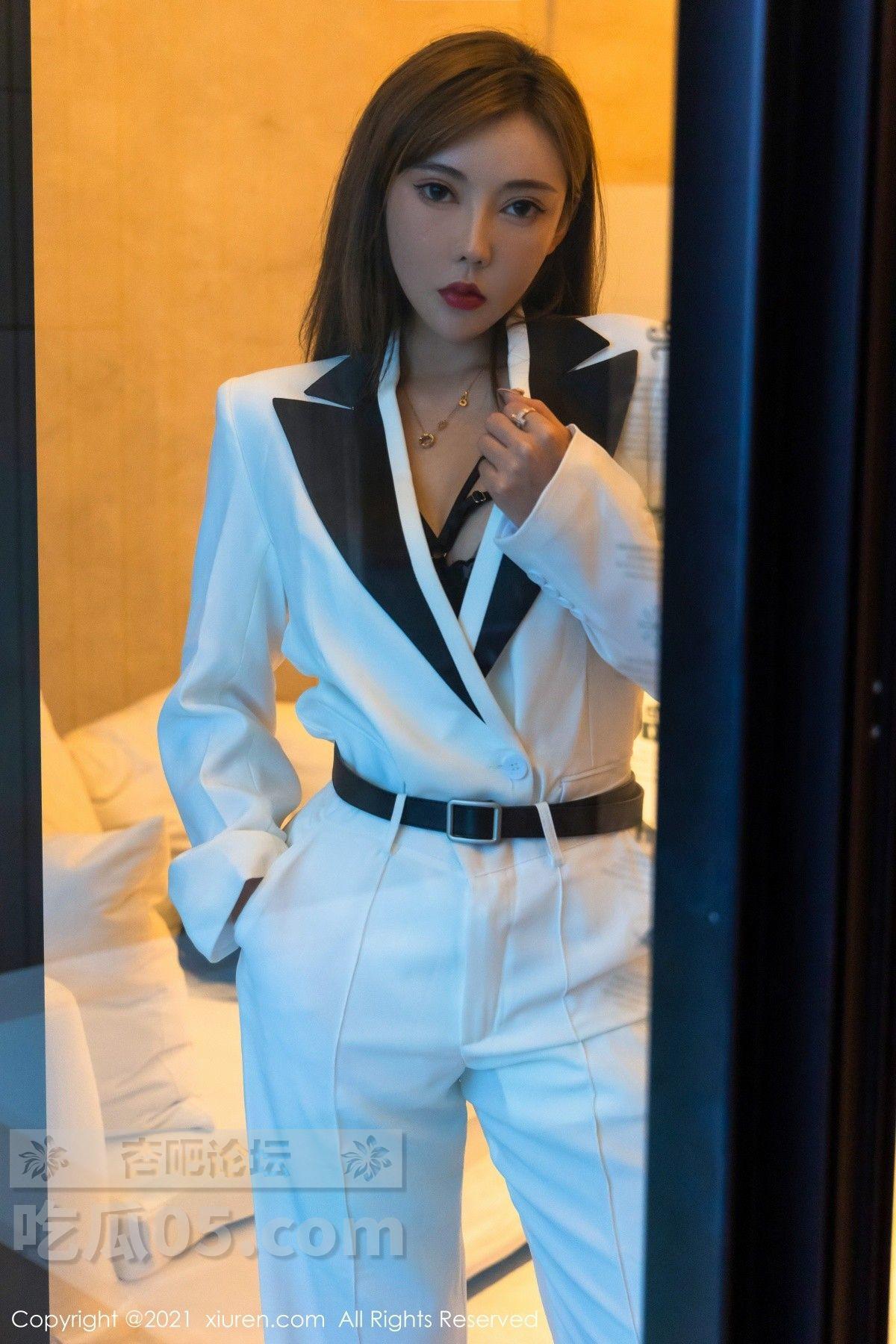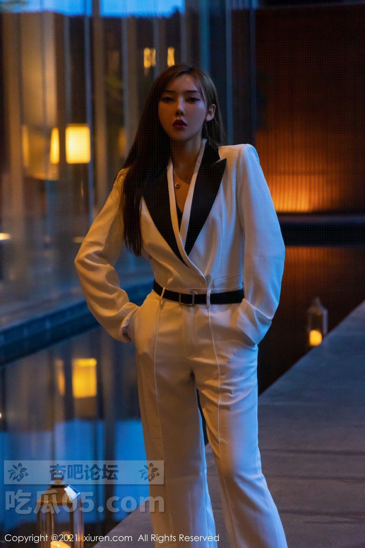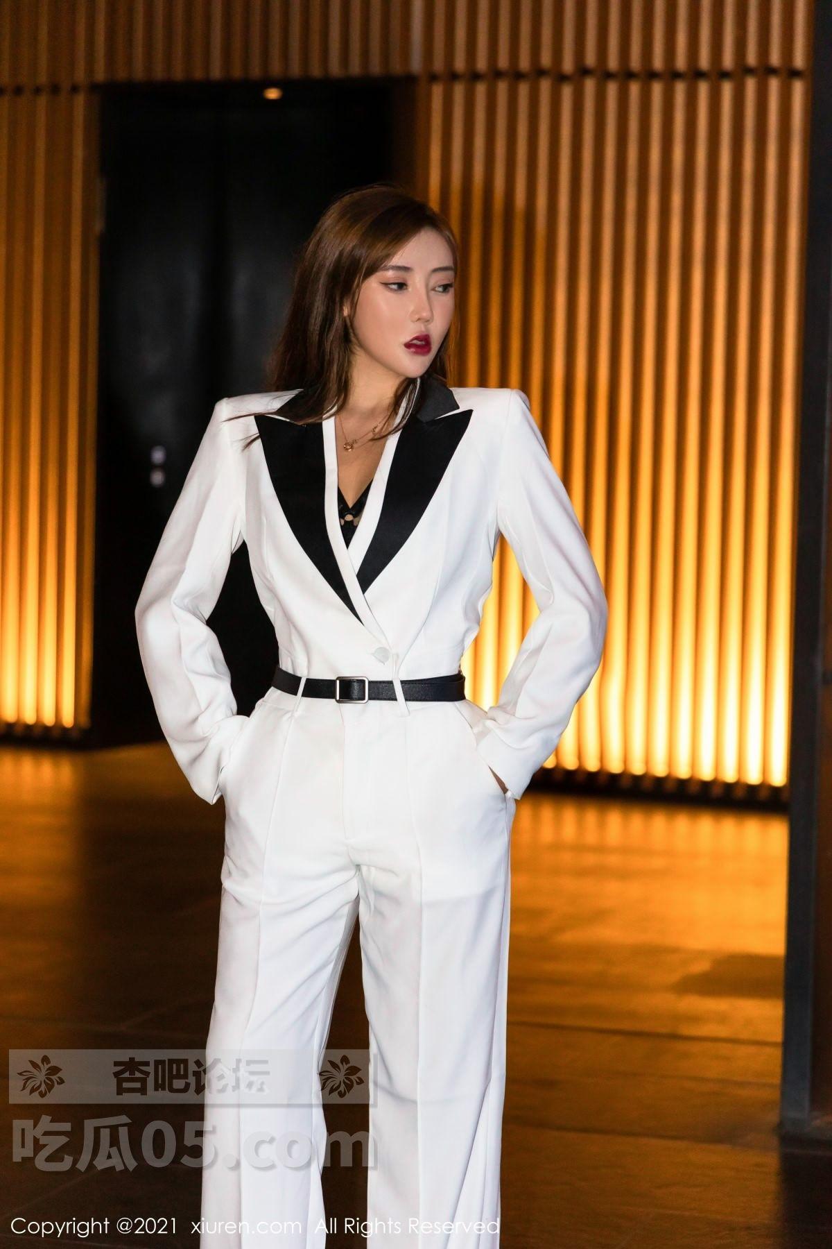 [美腿翘臀] 模特萌汉药baby三亚旅拍白色飒爽西装半脱露缕空内衣诱惑写真【50P】 |