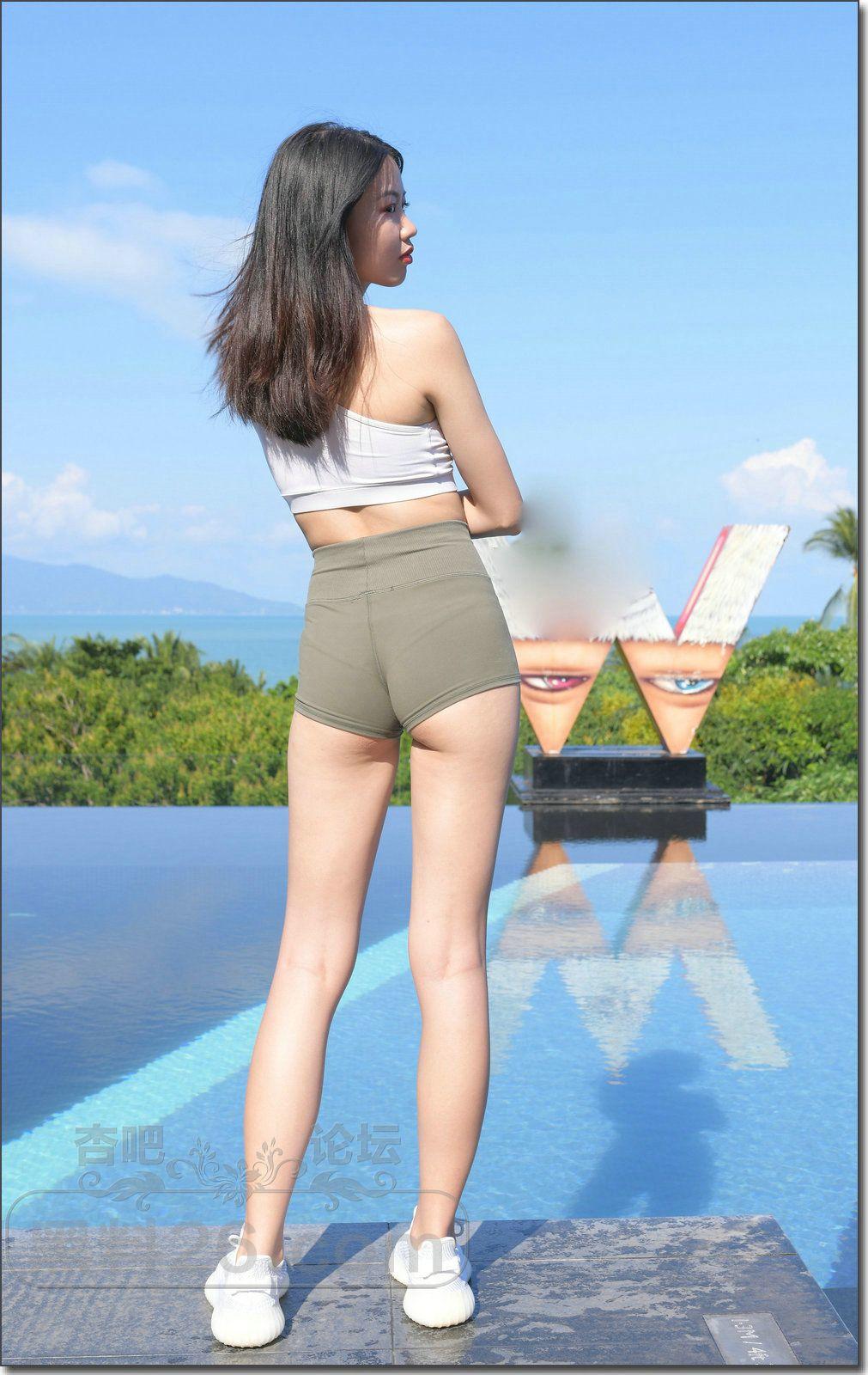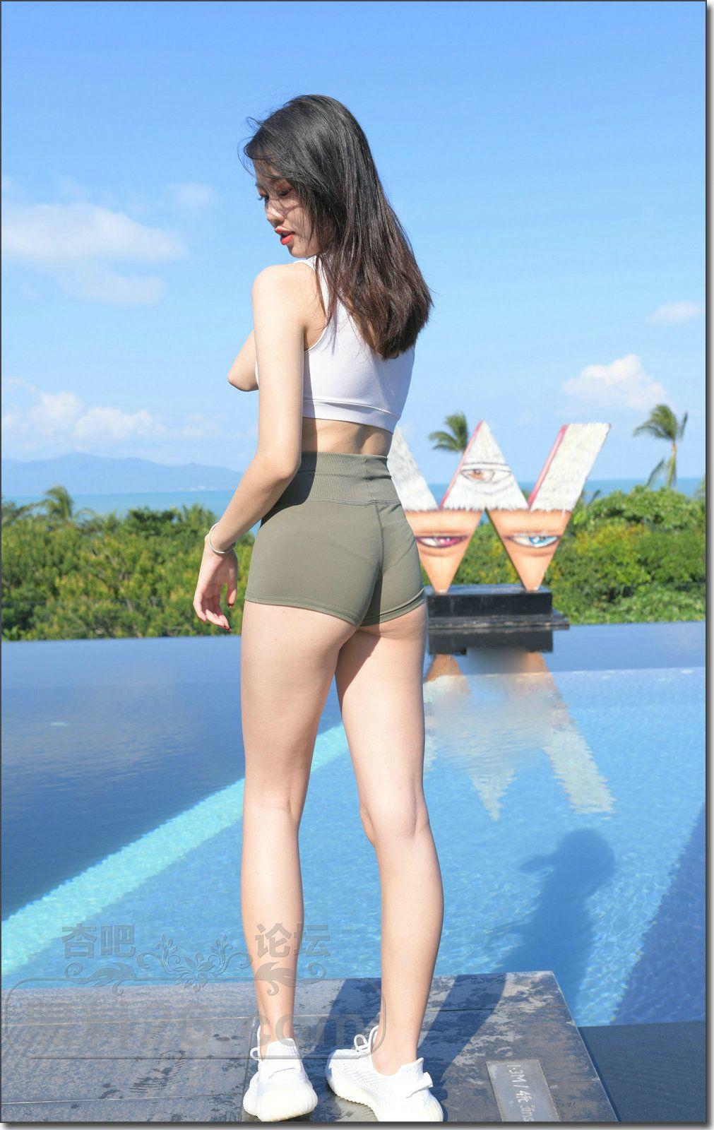 [街拍] 美女军绿色瑜伽短裤搭配白色紧身背心 身材曲线充满女性优雅魅力【26P】 |