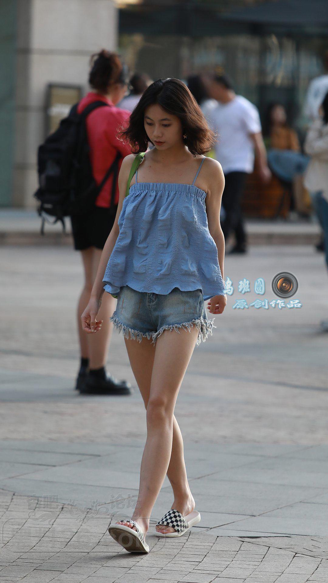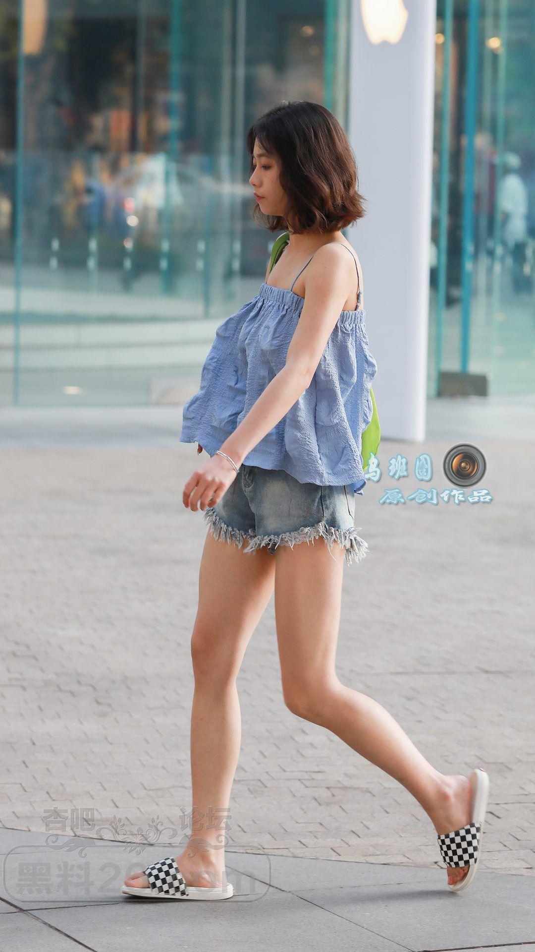 [街拍] 牛仔吊带上衣+牛仔短裤,搭配格纹凉拖鞋,这身穿搭清凉舒适,休闲范十足【18P】 |